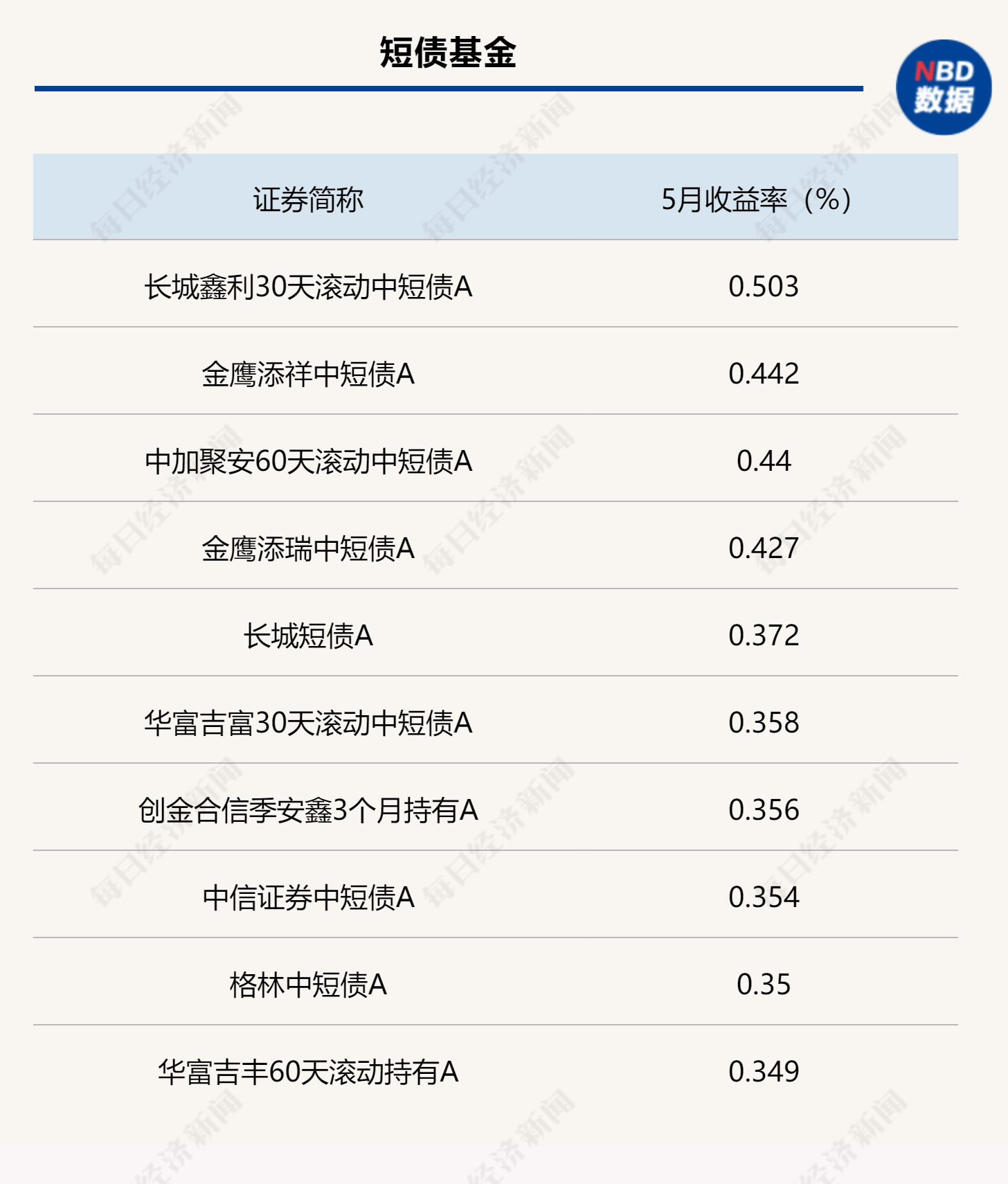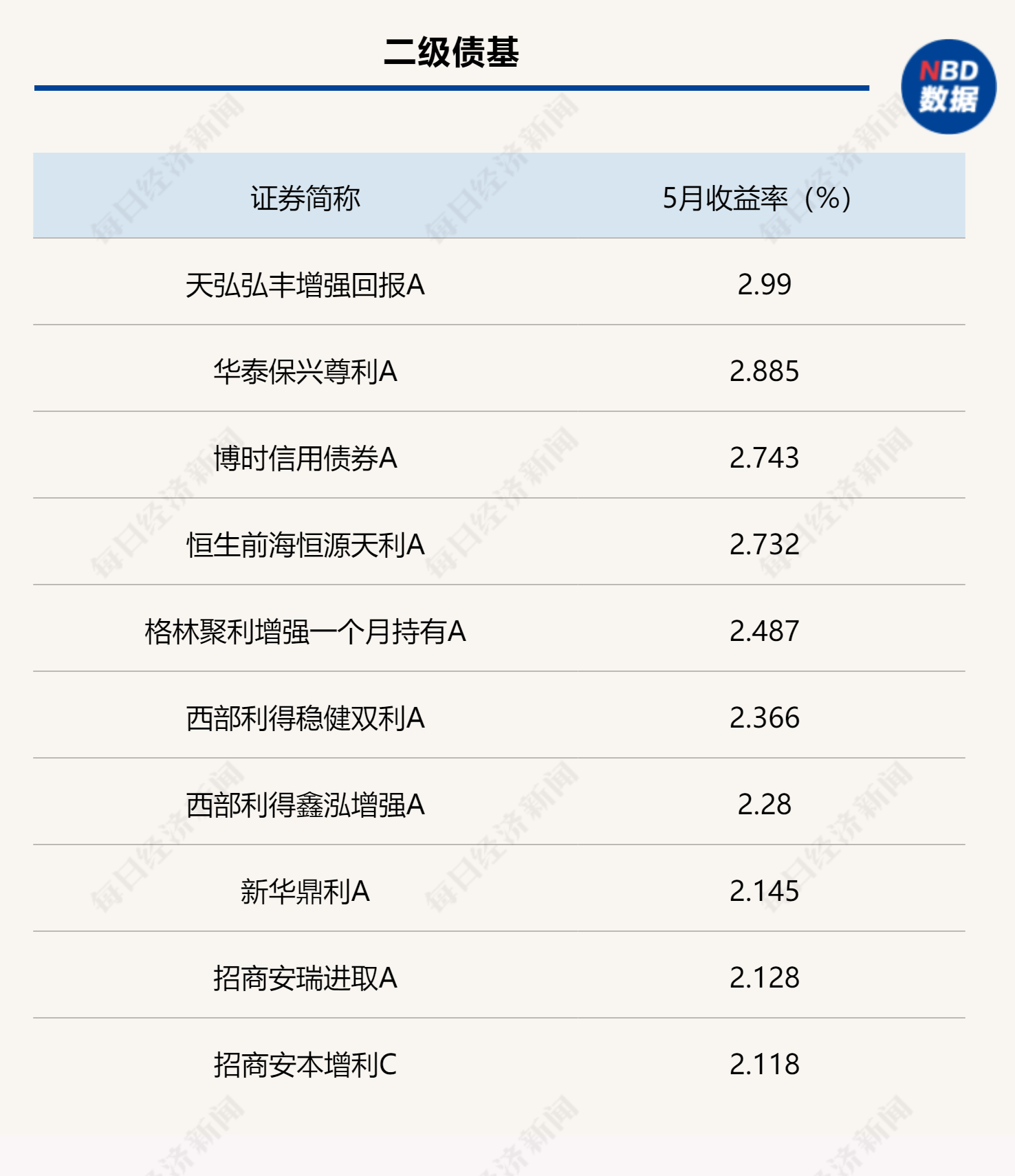 5月各类债基头部产品业绩统计(数据来源:Wind)