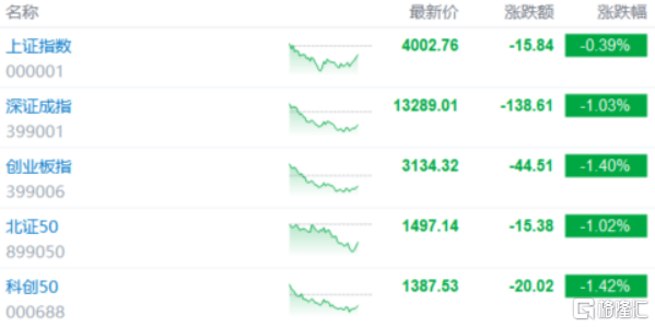11月11日,A股三大指数今日集体调整,截至收盘,沪指跌0.39%报4002点,深证成指跌1.03%,创业板指跌1.4%。全市场成交额2.01万亿元,较前一交易日缩量1805亿元,近2800股上涨,逾2500股下跌。