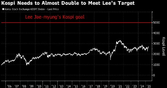 李在明在竞选活动中曾表示,他对Kospi指数的目标为5,000点,但未明确时间表。这一目标凸显出他对股市的重视,他还承诺提升本地股票的估值,终结“韩国折价”现象。
