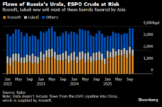 华盛顿上个月将俄罗斯石油公司和卢克石油公司列入黑名单,可以说这是本届政府上台以来对俄采取的最大力度行动,总统唐纳德・特朗普试图加大对克里姆林宫在乌克兰冲突问题上的施压力度。美国财政部本周早些时候表示这些措施已经取得成功,因为需求下降,而且俄罗斯主要石油的价格也有所下降。