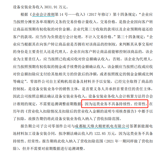 5月31日,*ST恒立在微信公众号发布信息称,聘请深圳堂堂会计师事务所(下称“堂堂所”)对2023年营收扣除问题重新出具核查报告,认为当年被扣除的3154.76万元设备安装业务收入不属于偶发性收入,不应被扣除,试图以此证明2023年扣除后营业收入未低于1亿元,避免触发退市风险警示。