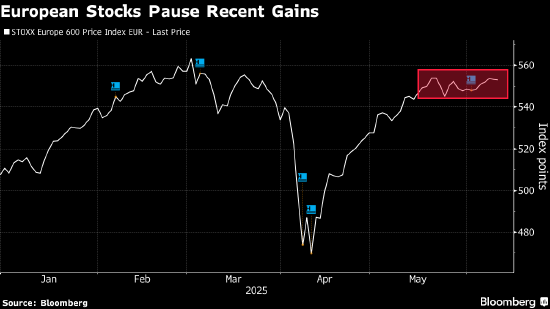 欧洲股市反弹之势本月趋缓,投资者期待贸易谈判取得更多进展。与此同时,欧盟认为与美国的贸易谈判将超出特朗普设定的7月9日最后期限,尽管过去一周谈判速度已经加快。