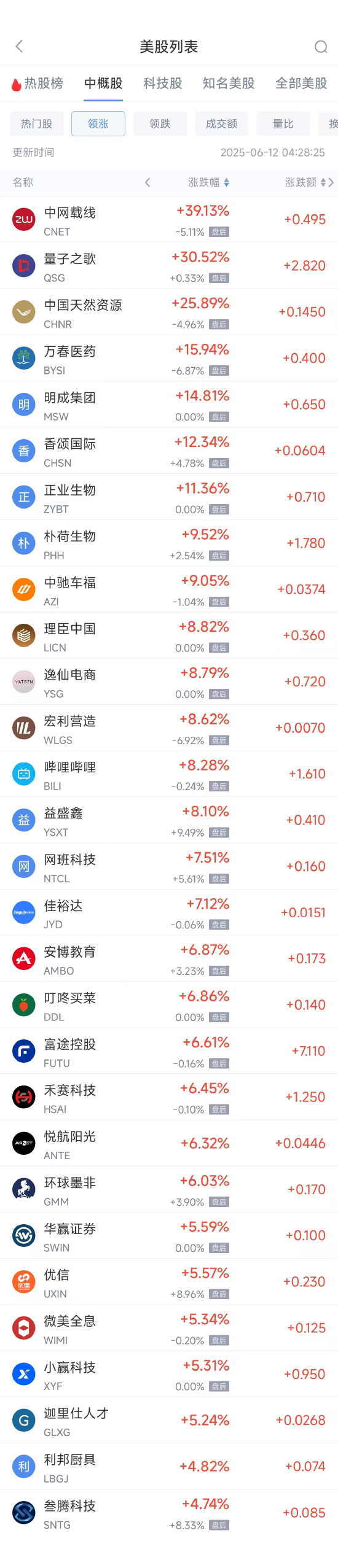 (截图来自新浪财经APP 行情-美股-中概股热门板块)下载新浪财经APP