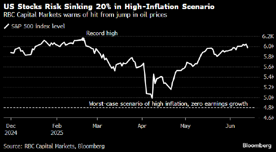 加皇资本市场策略师在列出了三种可能回调情景的报告中称,如果油价上涨导致通胀飙升,那么标普500指数面临下跌20%的风险。