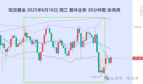具体走势上,金价自亚市开于3390.09美元/盎司,日内整体依然还是处于20多美金的区间内连续震荡走盘,于午间先行录得日内高点3399.69美元,并于美盘尾进一步回落录得日内低点3362.53美元,最后有所止跌,收于3369.20美元,操作也是来回多空捡钱的行情,日振幅37.16美元,收跌21.49美元,跌幅0.63%。