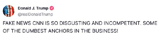 美国总统特朗普在社交媒体发文称,假新闻CNN简直令人作呕、无能至极。他们有些主播简直是业界最蠢的!