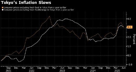 日本总务省周五发布数据,6月份东京剔除生鲜食品的消费者价格同比上涨3.1%,经济学家预测中值为上涨3.3%。总体通胀在3.1%,较5月份3.4%的涨幅放缓。