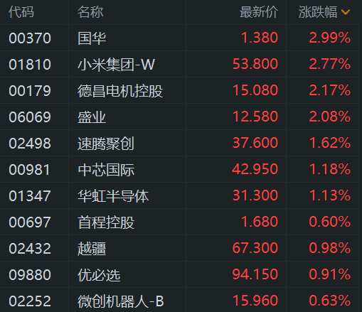 文章版权声明:除非注明,否则均为港股机器人概念股普涨,国华、小米、盛业、德昌电机控股涨超2%,速腾聚创、中芯国际、华虹半导体涨超1%原创文章,转载或复制请以超链接形式并注明出处。