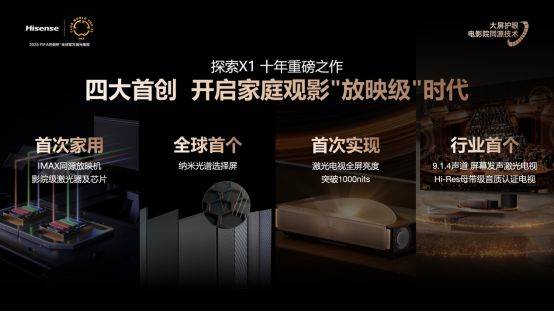 作为海信激光显示技术十年集大成之作,探索X1系列以“四大首创”为核心突破,首次将影院级放映技术融入家用场景,开启家庭观影的“放映级”时代。