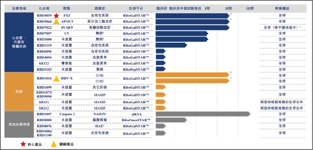 瑞博生物成立于2007年,公司致力于开发包括心血管、代谢类、肾脏和肝脏疾病的创新疗法,尤其专注于siRNA疗法。截至目前,公司有六款自研药物管线处于临床试验阶段,其中有4款处于II期临床试验中,1款处于Ⅲ期临床试验中。